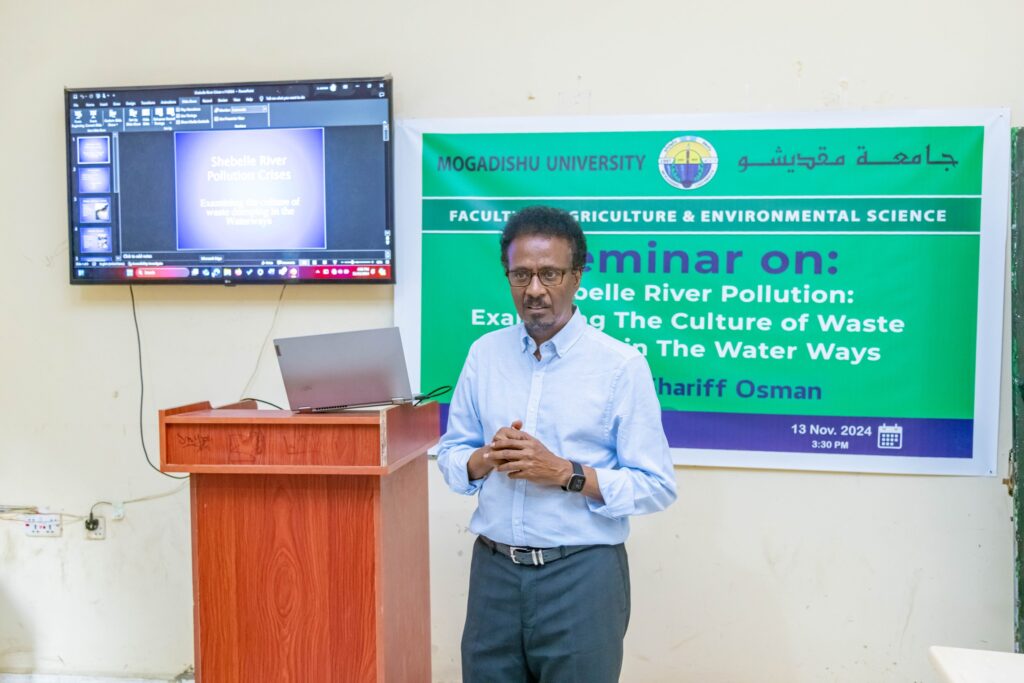 The Faculty of Agriculture and Environmental Sciences at the University of Muqdisho recently organized an awareness seminar titled “Pollution of the Shabelle River and the Cultural Practices of Dumping Waste into Water Bodies.” This event aimed to raise awareness about the environmental impact of pollution on the Shabelle River, one of Somalia’s most vital water sources, and the broader effects of waste disposal practices in water bodies and surrounding areas.
